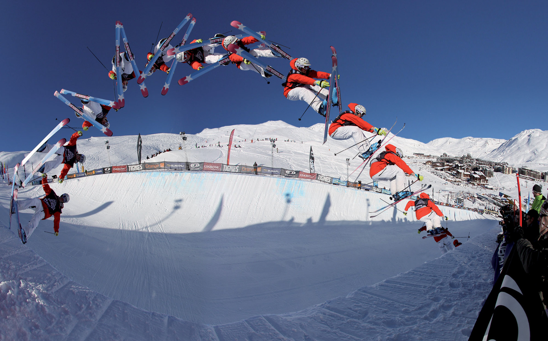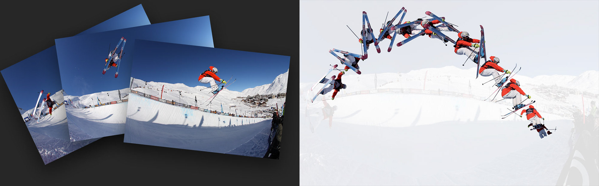 Création d'un photomontage visant à mettre en avant la décomposition des mouvements du skieur lors du Mondial du ski 2008.